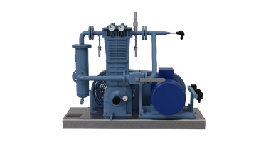 The Blackmer LB161 and LB162 compressors are two-cylinder piston gas compressors, delivering a capacity of 16.5 CFM at 825 RPM.