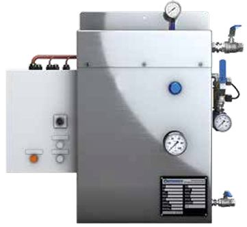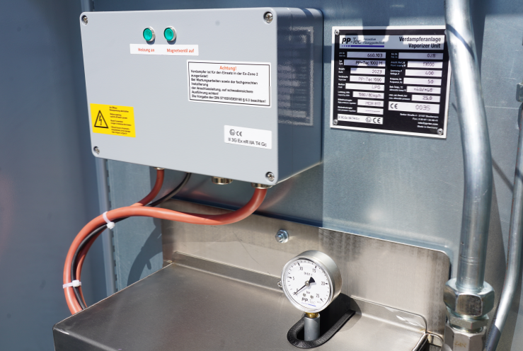 Die PPTEC-ENERGY Industrie-Verdampfer sind vollautomatisch betriebene Trockenverdampfer mit Kapazitäten von 40, 60, 80, 100, 120, 140 und 160 kg/h. Die Verdampfer verfügen über eine präzise Heiztemperaturregelung und -überwachung über PT 100 sowie redundanten Überflutungsschutz. Für maximale Betriebssicherheit sind sie mit einem Magnetventil gesteuert durch PT 100 und einem Schwimmerschalter im internen Flüssigkeitsabscheider ausgestattet. Zusätzlich sorgt ein Überhitzungsschutz mit Sicherheitsabschaltung für sicheren Betrieb.